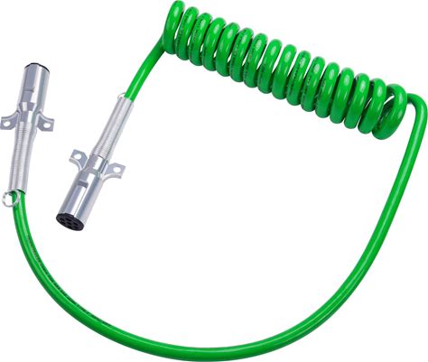 Cheemuii 7 Way Coiled Trailer Cord 15ft Long Tail ABS Electrical Power Wire Air Brake Coiled Electric Cable For Semi Trucks Trailers Tractors